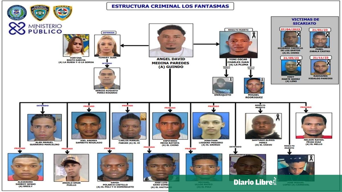 Según las autoridades, la estructura criminal "Los Fantasmas" liderada por Medina Paredes carga con delitos desde el año 2021 como robos, secuestros, asesinatos, entre otros, e incluye a individuos fallecidos, detenidos y prófugos.