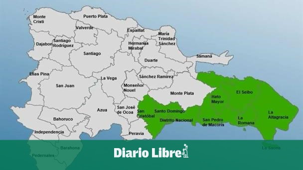 Las provincias en alerta verde son: La Altagracia, San Pedro de Macorís, La Romana, Hato Mayor, El Seibo, Distrito Nacional, Santo Domingo y San Cristóbal.