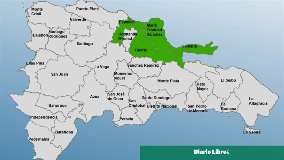 Las provincias en alerta verde son: Espaillat, María Trinidad Sánchez, Duarte y Samaná.