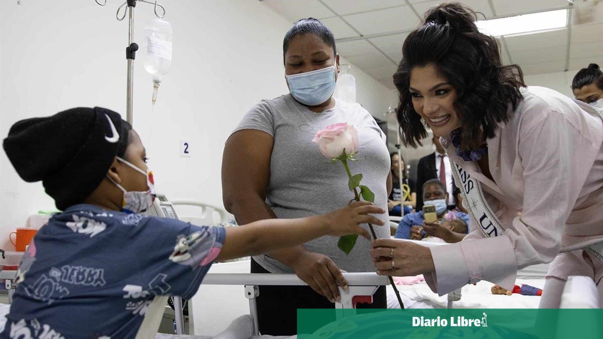 La Miss Universo nicaragüense Sheynnis Palacios visitó a niños con cáncer del Hospital Infantil Dr. Robert Reid Cabral, donde les dijo que les traía alegría y una sonrisa, al tiempo que les entregaba una flor.