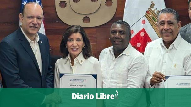 La gobernadora del estado de Nueva York, Kathy Hochul, recibió este lunes la llave simbólica de la ciudad de Santiago durante un acto celebrado en la Sala Capitular de la Alcaldía, donde también fue reconocida como visitante distinguida, en el marco de su primera visita oficial a la República Dominicana.