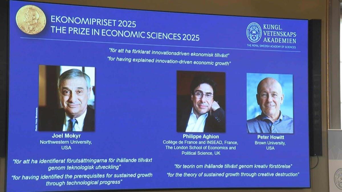 El estadounidense-israelí Joel Mokyr, el francés Philippe Aghion y el canadiense Peter Howitt se alzaron este lunes con el Nobel de Economía por su trabajo sobre el impacto de la tecnología en el crecimiento.