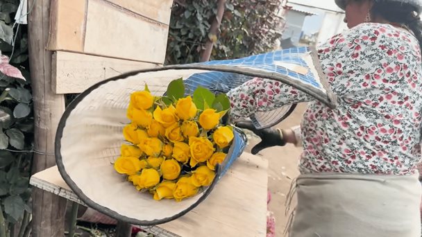 "Es un emprendimiento que la mayoría de personas optó porque, como usted sabe, aquí en Ecuador no hay empleo. Por ejemplo, yo tengo una maestría y trabajo aquí porque no tengo trabajo, he tratado de conseguir, pero como no tengo. Todos en mi familia somos profesionales, pero como no tenemos optamos por tener las flores y y nos va bien, la verdad", asegura Blanca Pillajo.